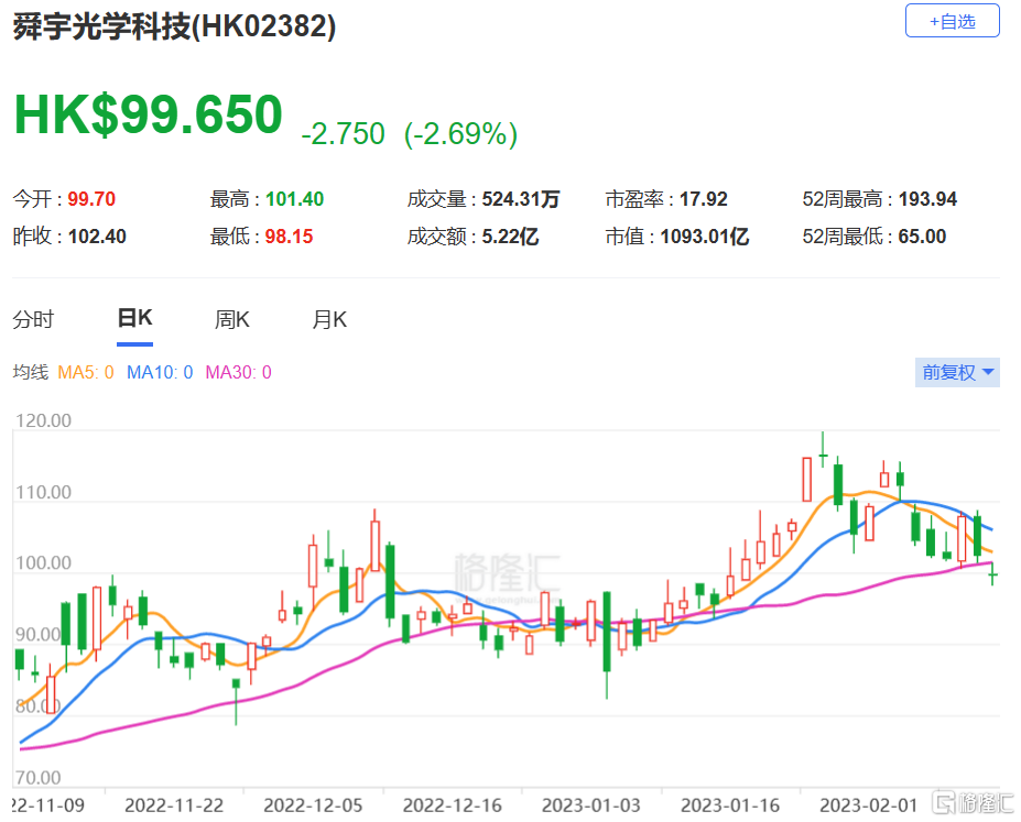 大摩发表报告指,舜宇(2382.HK)发盈警,预期于全年盈利按年减少约50%至55%。由于1月份出货量仍然疲软,而该行分析表明,其今年不太可能维持或提高平均售价以提高毛利率,因此盈警将引起投资者对其上半年盈利前景的担忧。维持对该股“与大市同步”评级,目标价106港元。