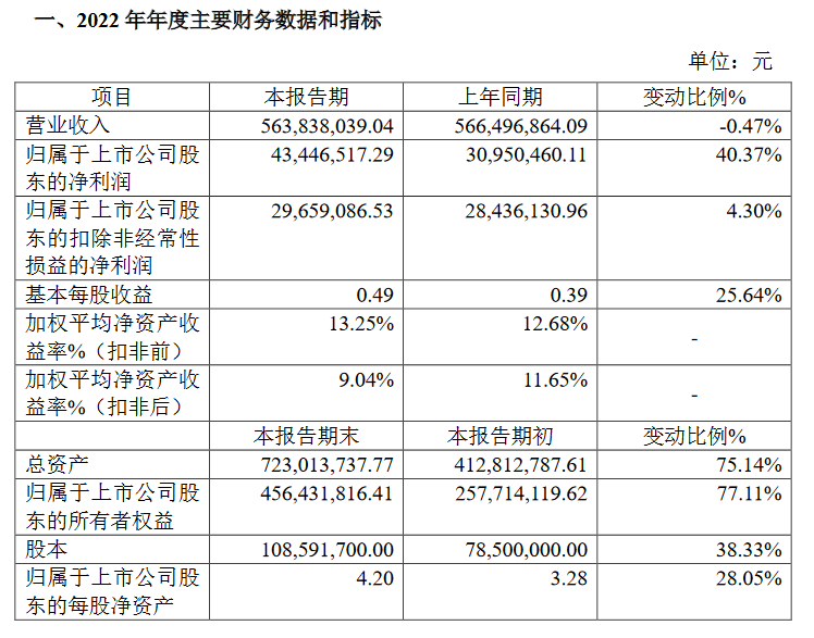 挖贝网 2月24日消息,北交所上市企业昆工科技(831152)发布2022年业绩快报,去年实现营业收入5.64亿元,净利润为4345万元,同比增长40.37%,扣非后净利润2966万元,同比增长4.3%。